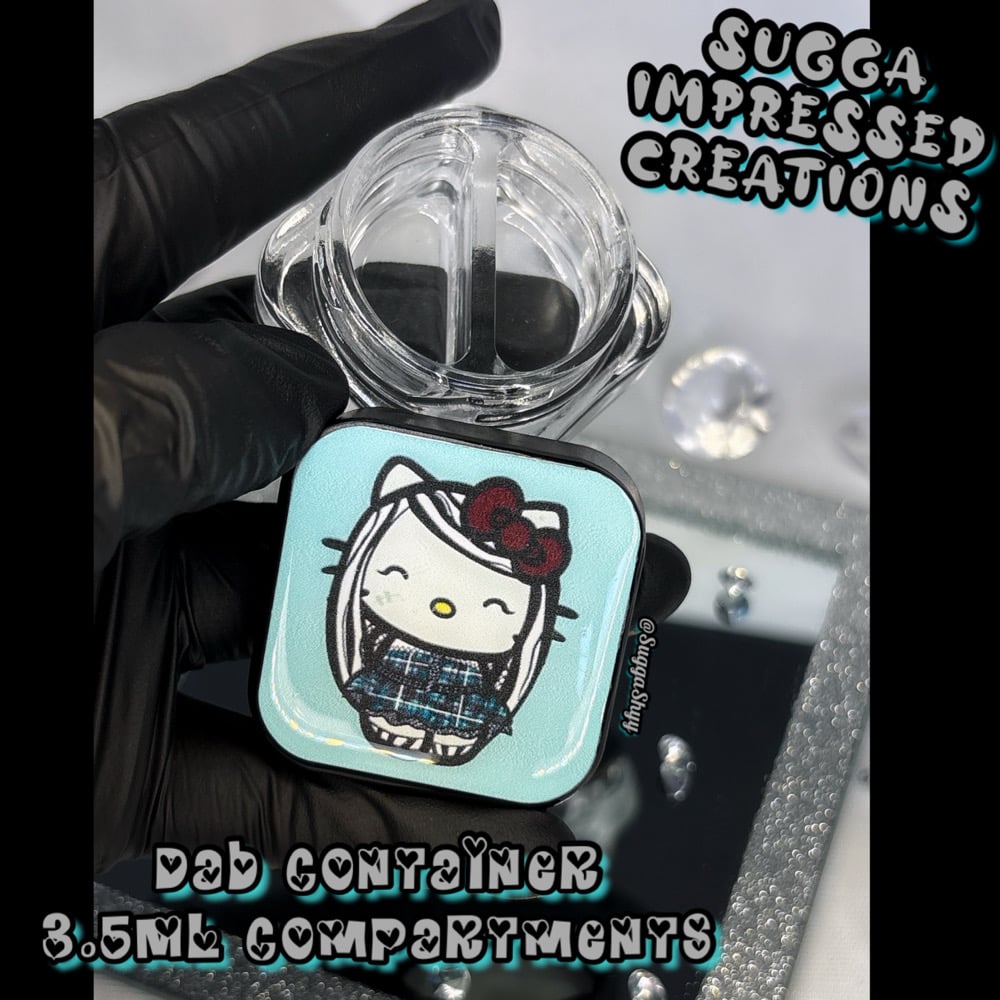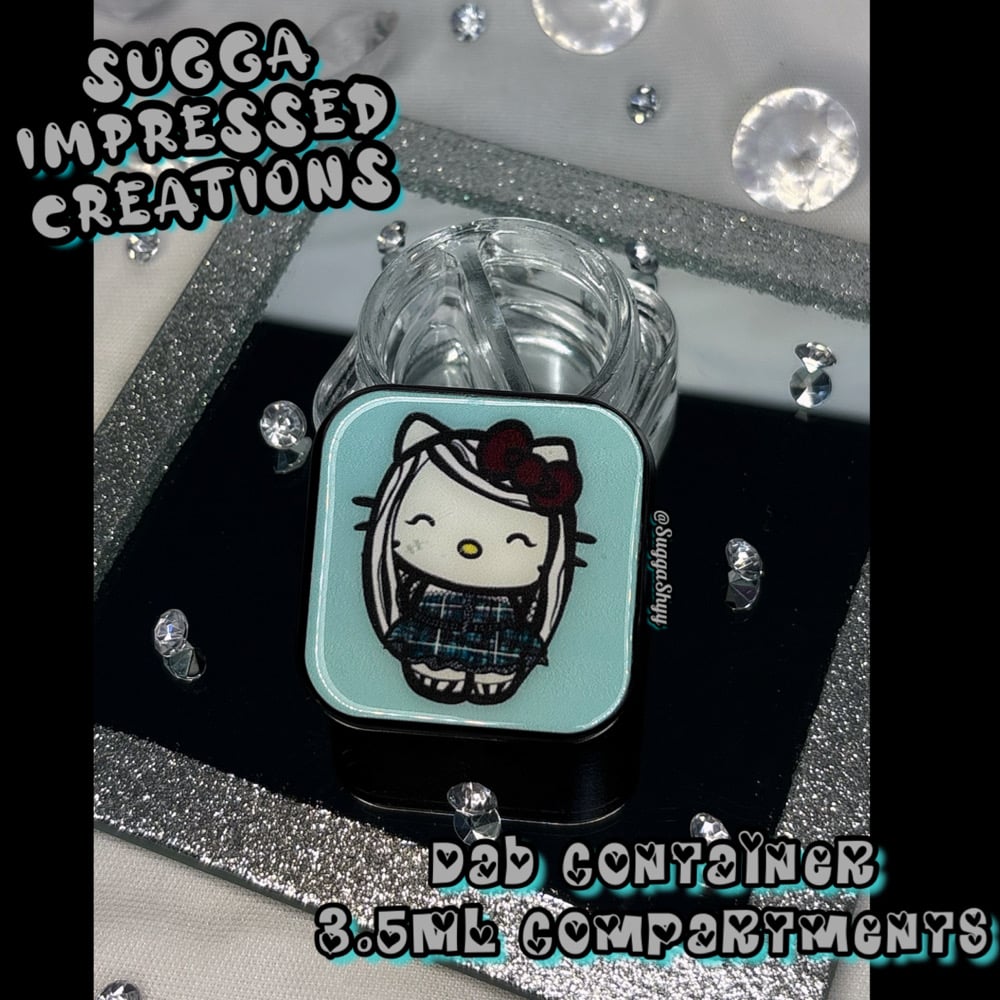 Unique One Of A Kind Hello Kitty Frankie Stein Dab Container!!!!With My New Collection Of Dab Containers You Can Choose Either A 3 Compartment That Holds 2ML In Each Orrr You Can Get The 2 Compartments That Holds 3.5ML In Each ✨✨Hand Crafted By Me 🫶🏼💕💕