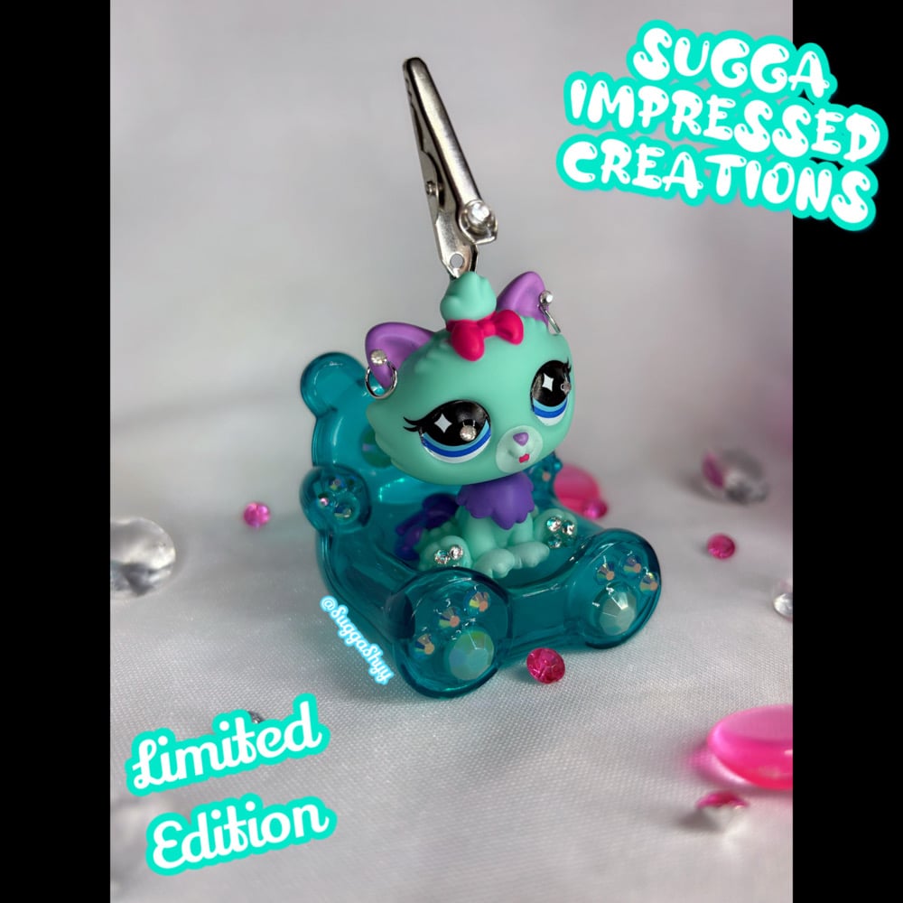 Customized Limited Edition LPS Roach Clip. Handcrafted & Bedazzled With Love ! One Of A Kind Clip & Comes With An Adorable Bedazzled LPS Couch For Your Clip To Sit Pretty In🩵