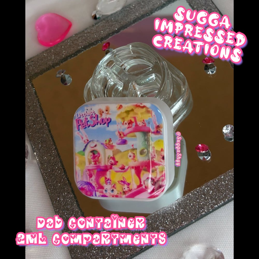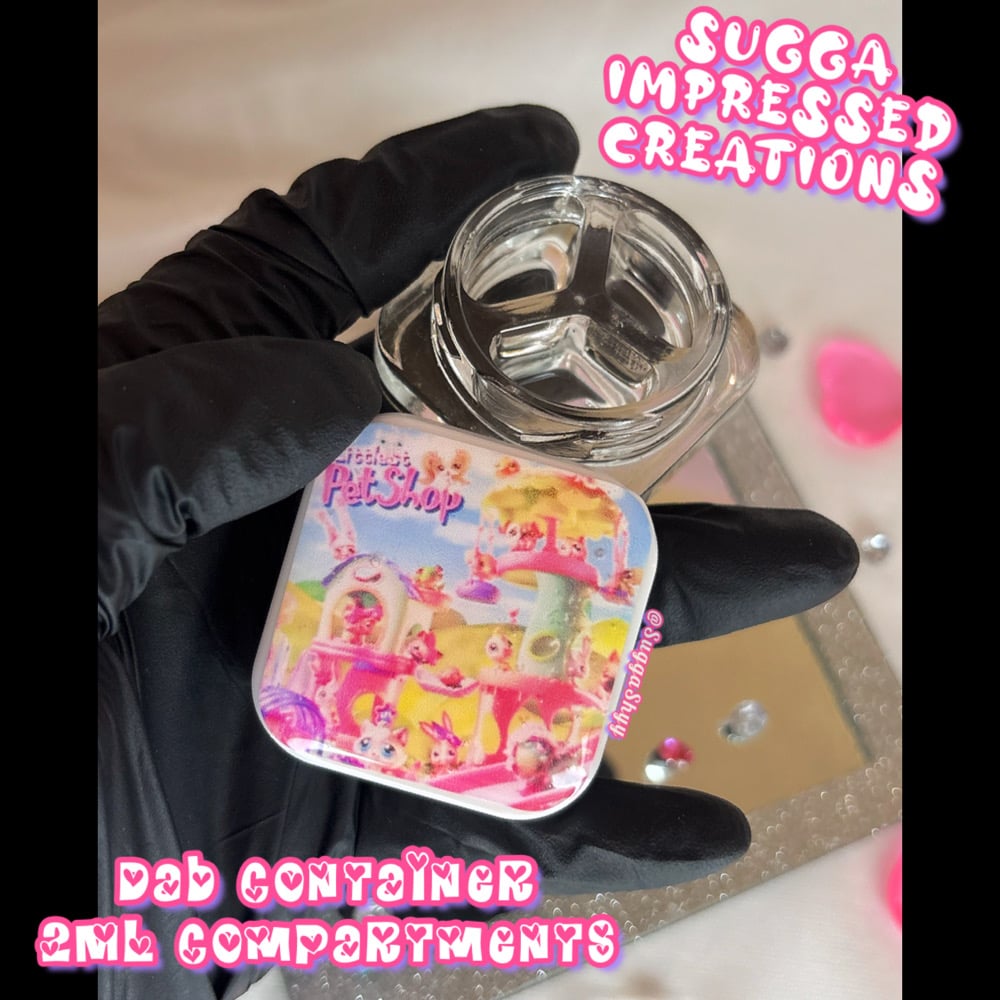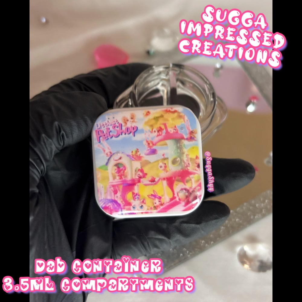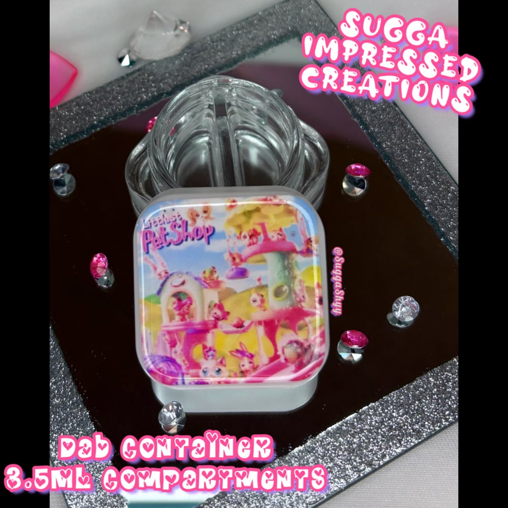 Unique One Of A Kind Littlest Pet Shop Themed Dab Container!!!! With My New Collection Of Dab Containers You Can Choose Either A 3 Compartment That Holds 2ML In Each Orrr You Can Get The 2 Compartments That Holds 3.5ML In Each ✨✨Hand Crafted By Me 🫶🏼💕💕